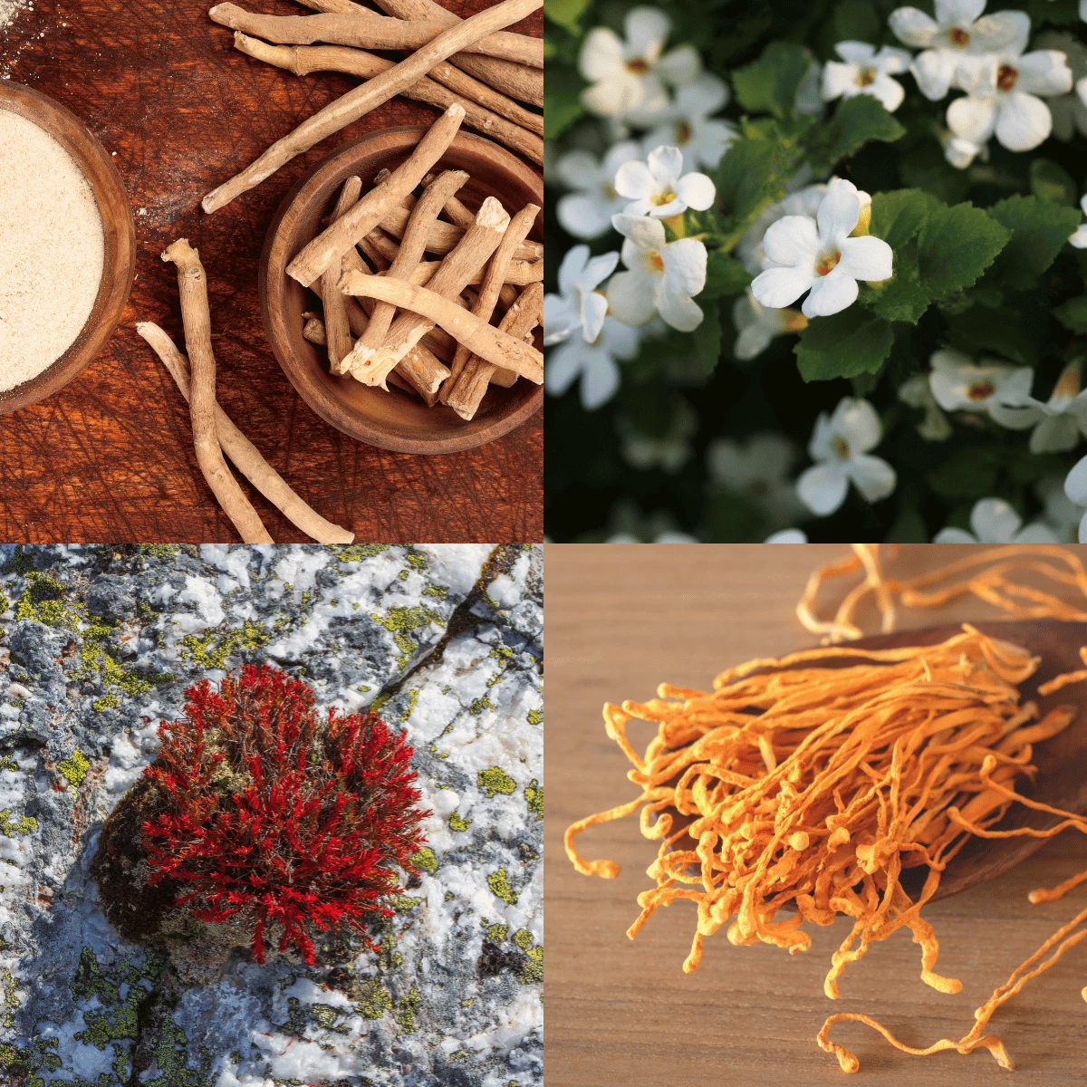 Różeniec górski, Ashwagandha KSM-66®, Bakopa i Cordyceps to składniki zaliczane do grupy adaptogenów. Wspierają one naturalną odporność organizmu na czynniki stresowe, wspomagają funkcje poznawcze oraz dodają witalności, nie wykazując przy tym działania uzależniającego.
