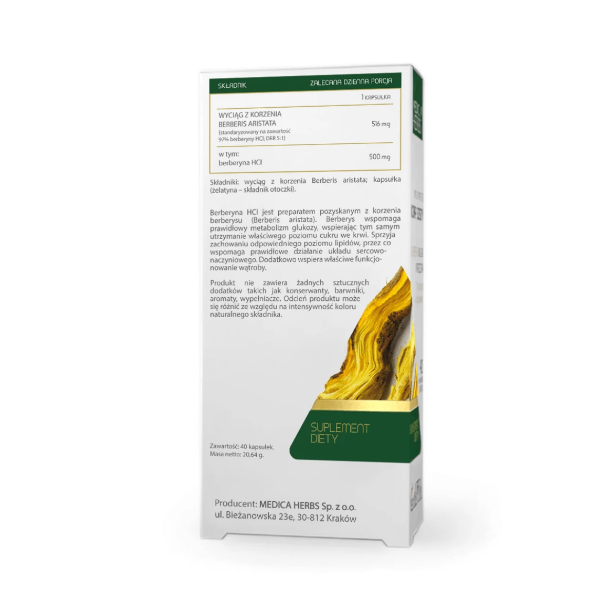 Berberyna HCL 516 mg Właściwy Poziom Glukozy (40 kaps) Medica Herbs