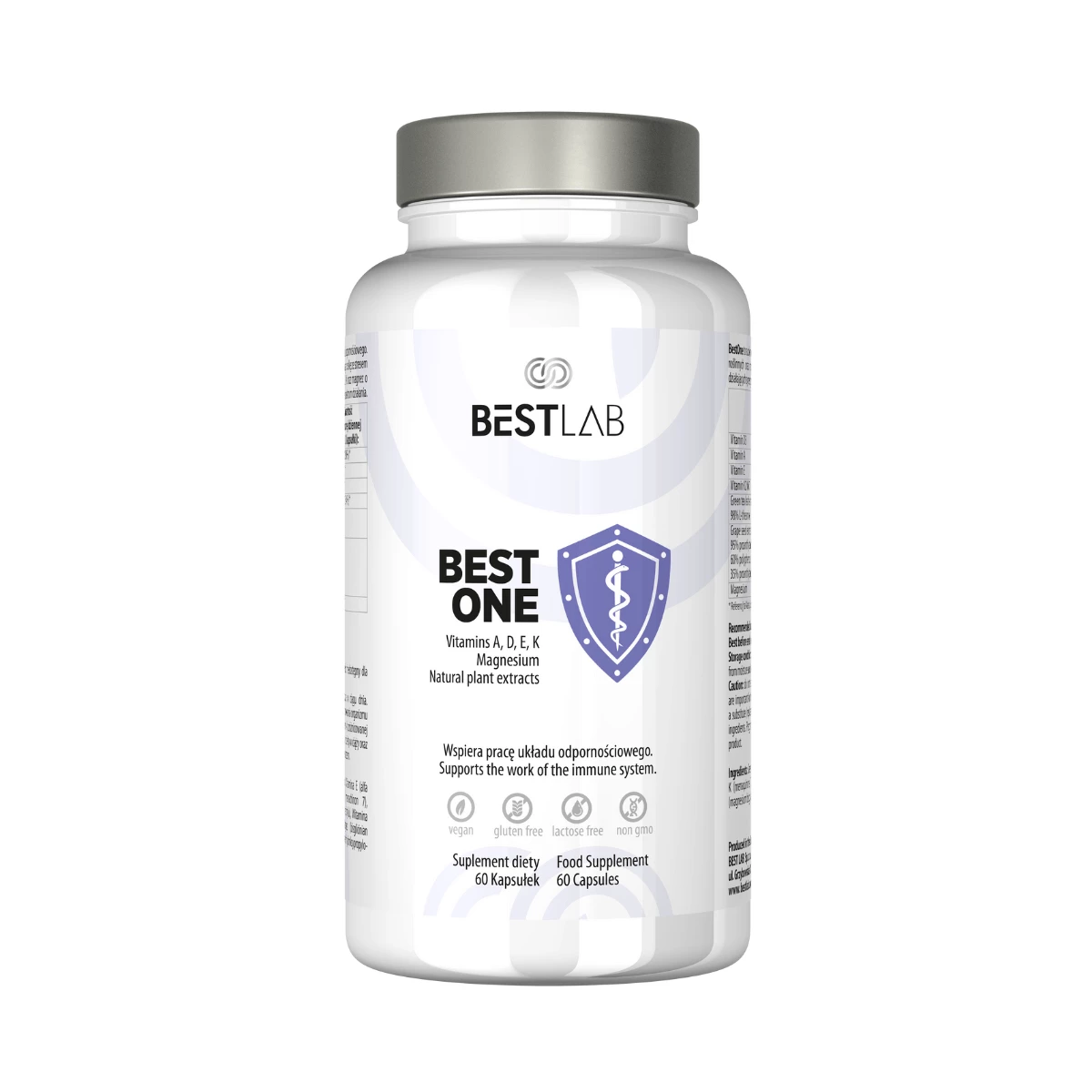BestOne powstał z myślą o niwelowaniu stanów zapalnych organizmu - aby kompleksowo zadbać o odporność. Zawiera kluczowe do tego witaminy A, D, E i K rozpuszczalne w tłuszczach oraz takie składniki jak magnez, L-Teanina i kompleksy polifenoli.