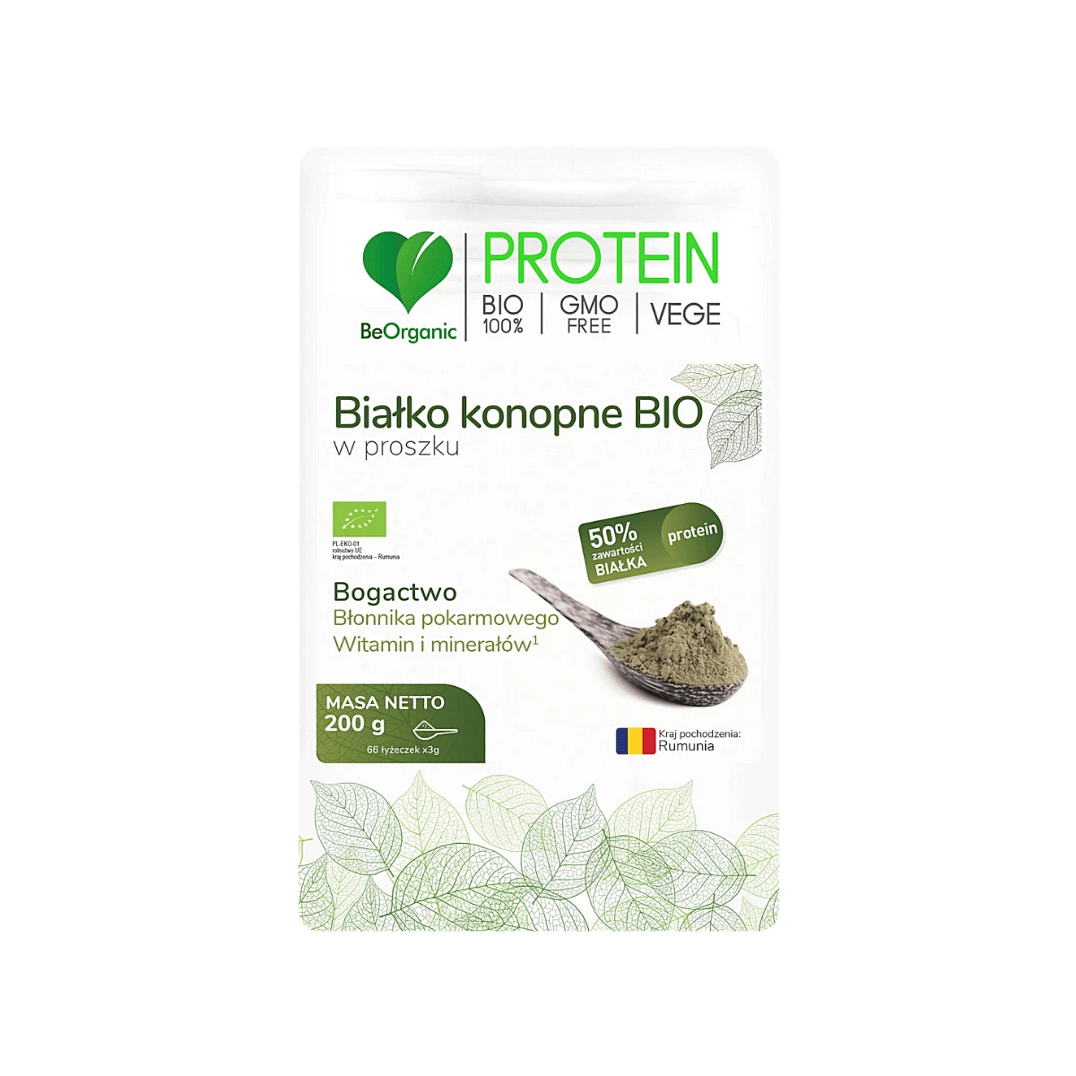 Białko Konopne Bio Protein 50% Proszek 200 g BeOrganic