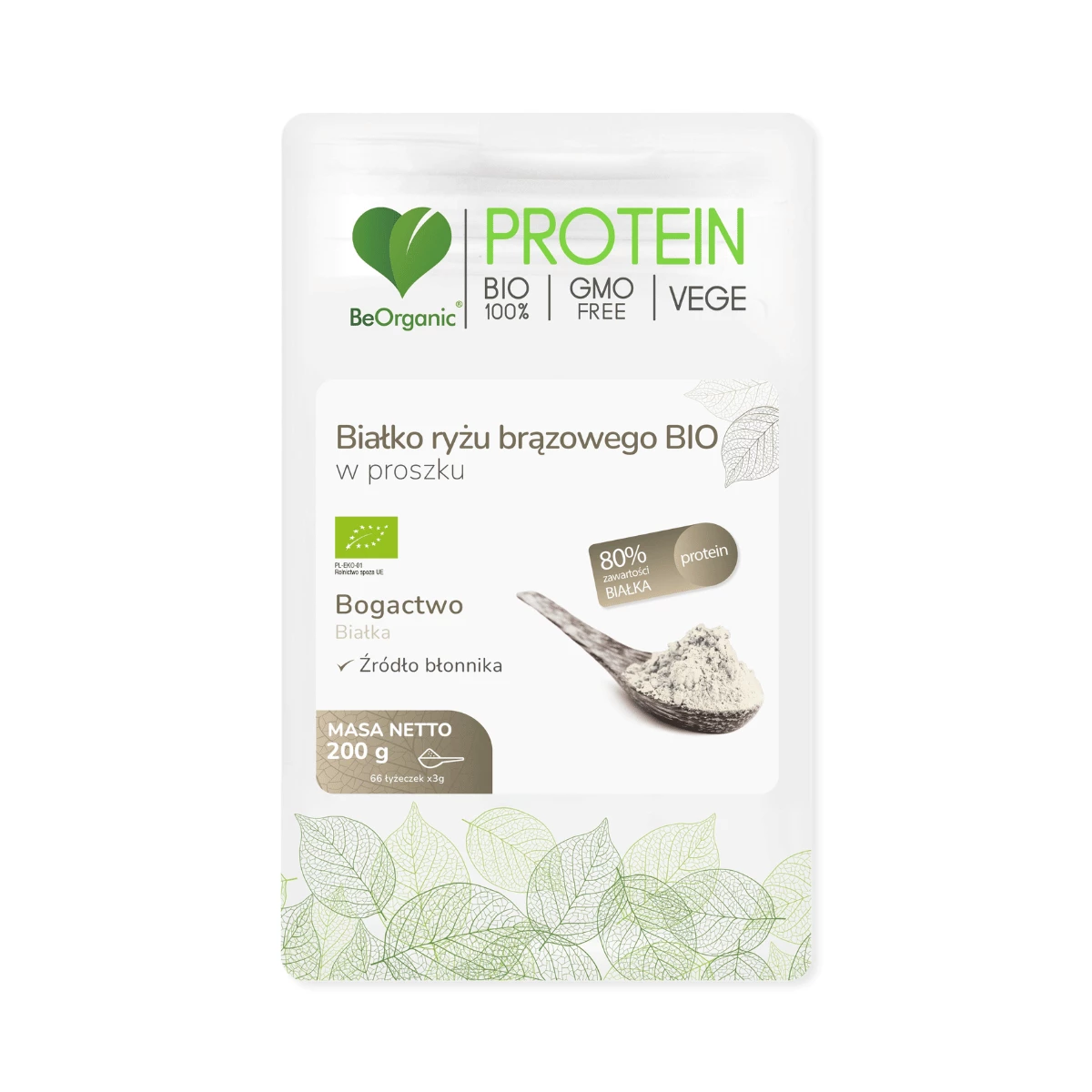 Białko Ryżu Brązowego Bio 80% Protein Proszek 200 g BeOrganic