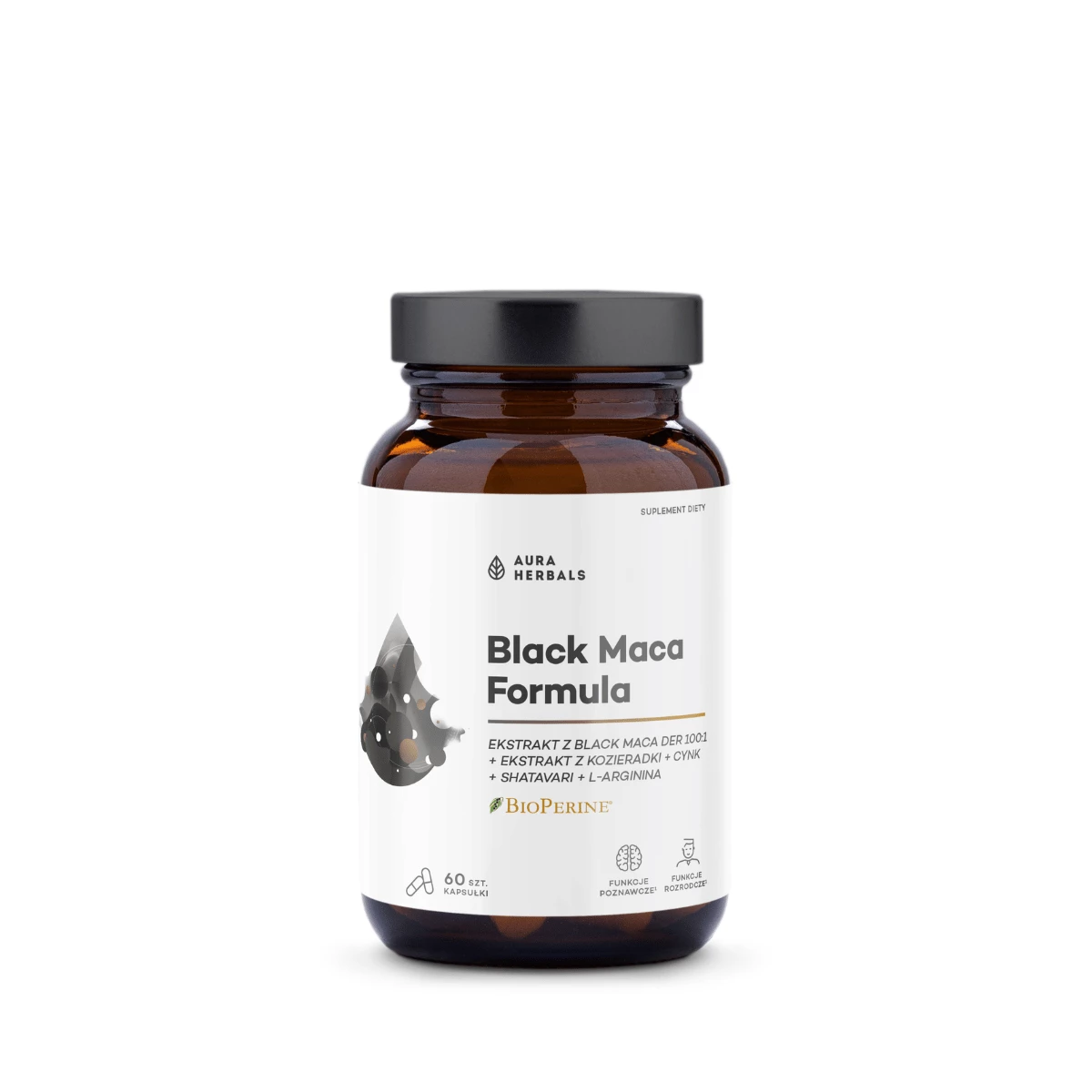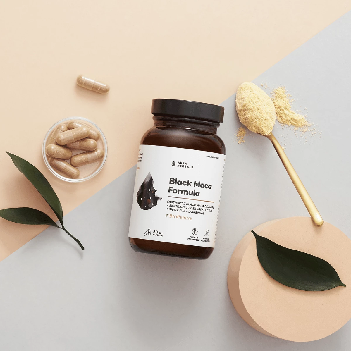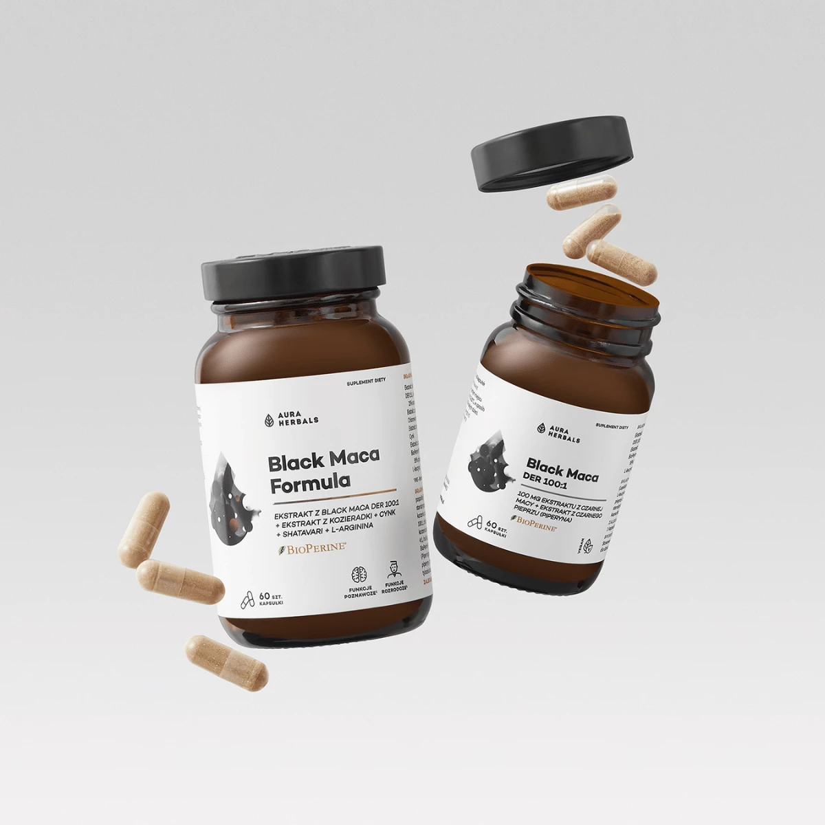 Black Maca Formula Aura Herbals wspiera organizm w utrzymaniu naturalnej równowagi oraz kondycji psychofizycznej.