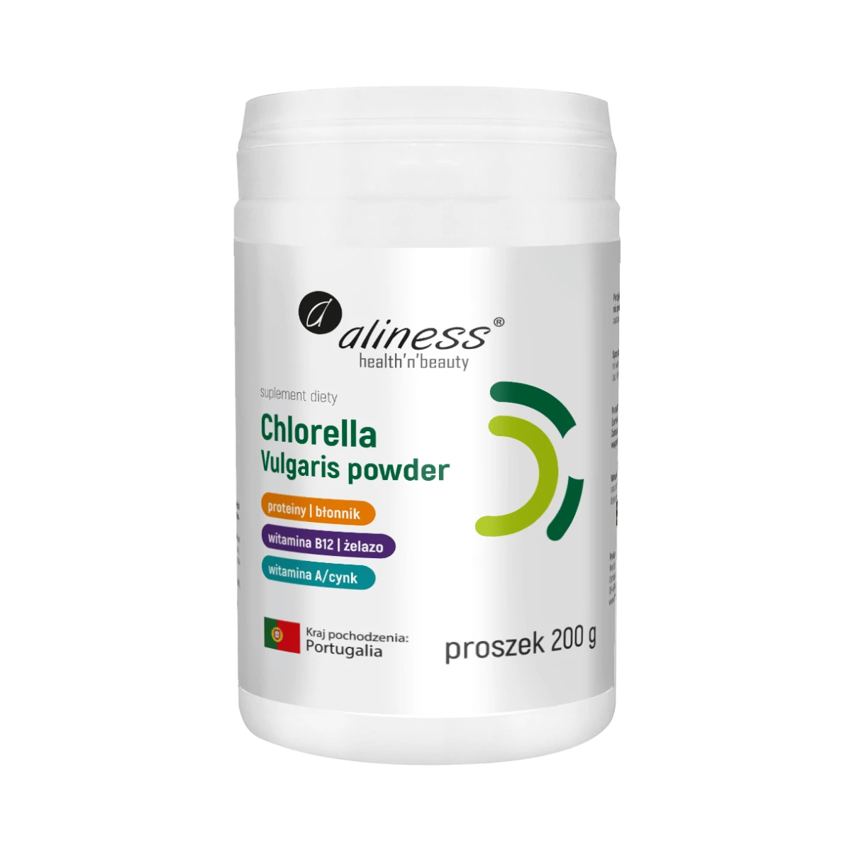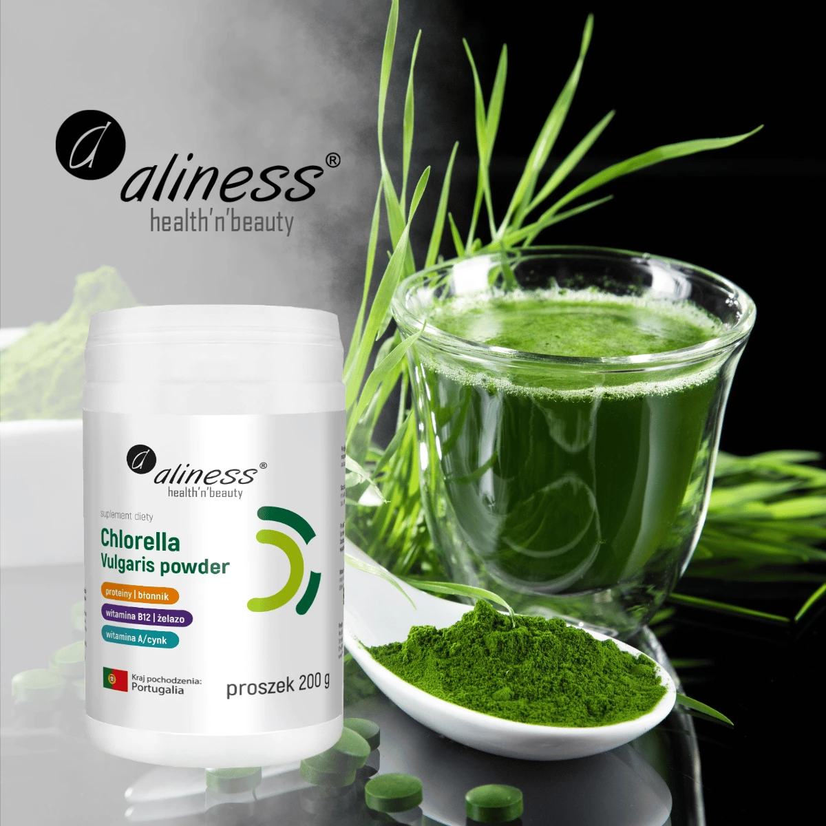 Organiczna Chlorella firmy Aliness pochodzi z portugalskich hodowli i zawiera niemodyfikowane genetycznie algi, a metoda ich uprawy imituje naturalne warunki wzrostu i rozmnażania tych organizmów.