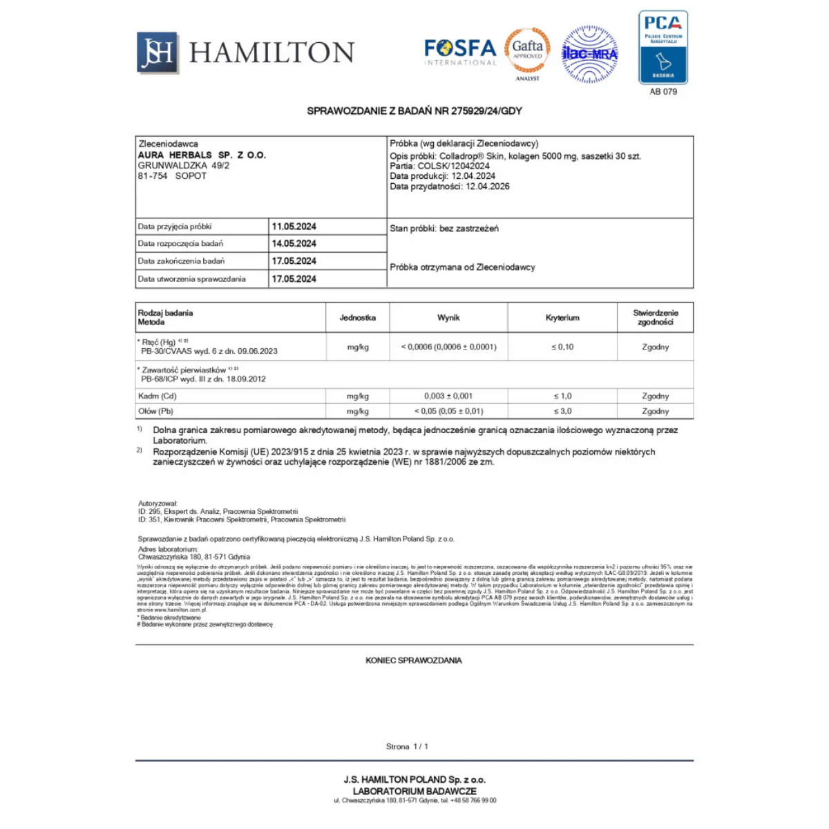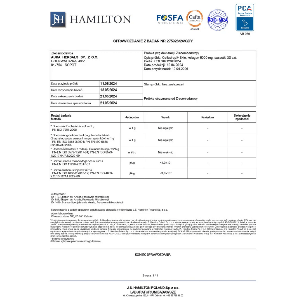Produkt został przebadany w niezależnej jednostce laboratoryjnej w celu zagwarantowania najwyższej jakości i bezpieczeństwa stosowania suplementu diety.