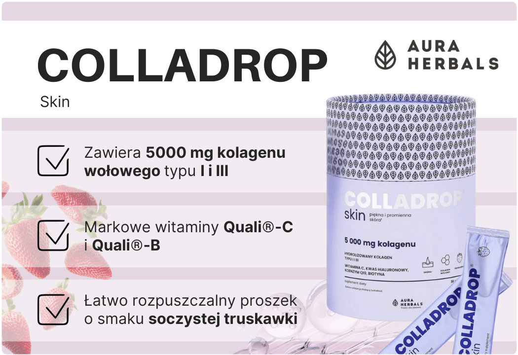 Cechy suplementu Colladrop Sport firmy Aura Herbals: