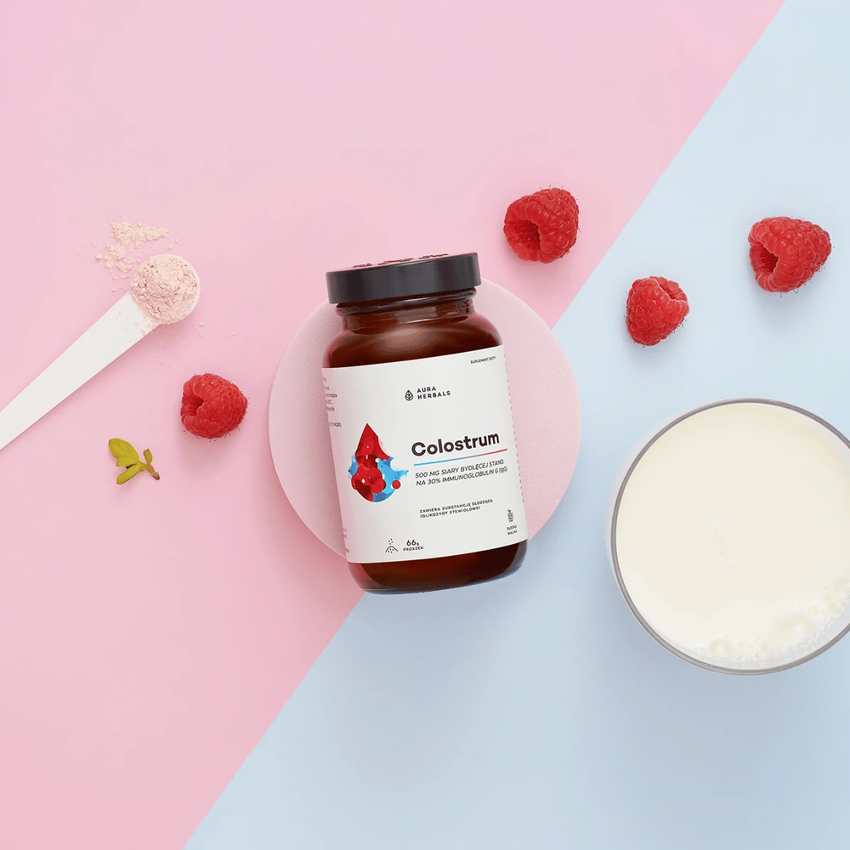 Naturalne wsparcie organizmu? Suplement diety Colostrum 500 mg Aura Herblas to wysokiej jakości siara bydlęca w formie pysznego, malinowego proszku. Idealne rozwiązanie dla całej rodziny, ponieważ łączy w sobie moc natury z wygodą stosowania.