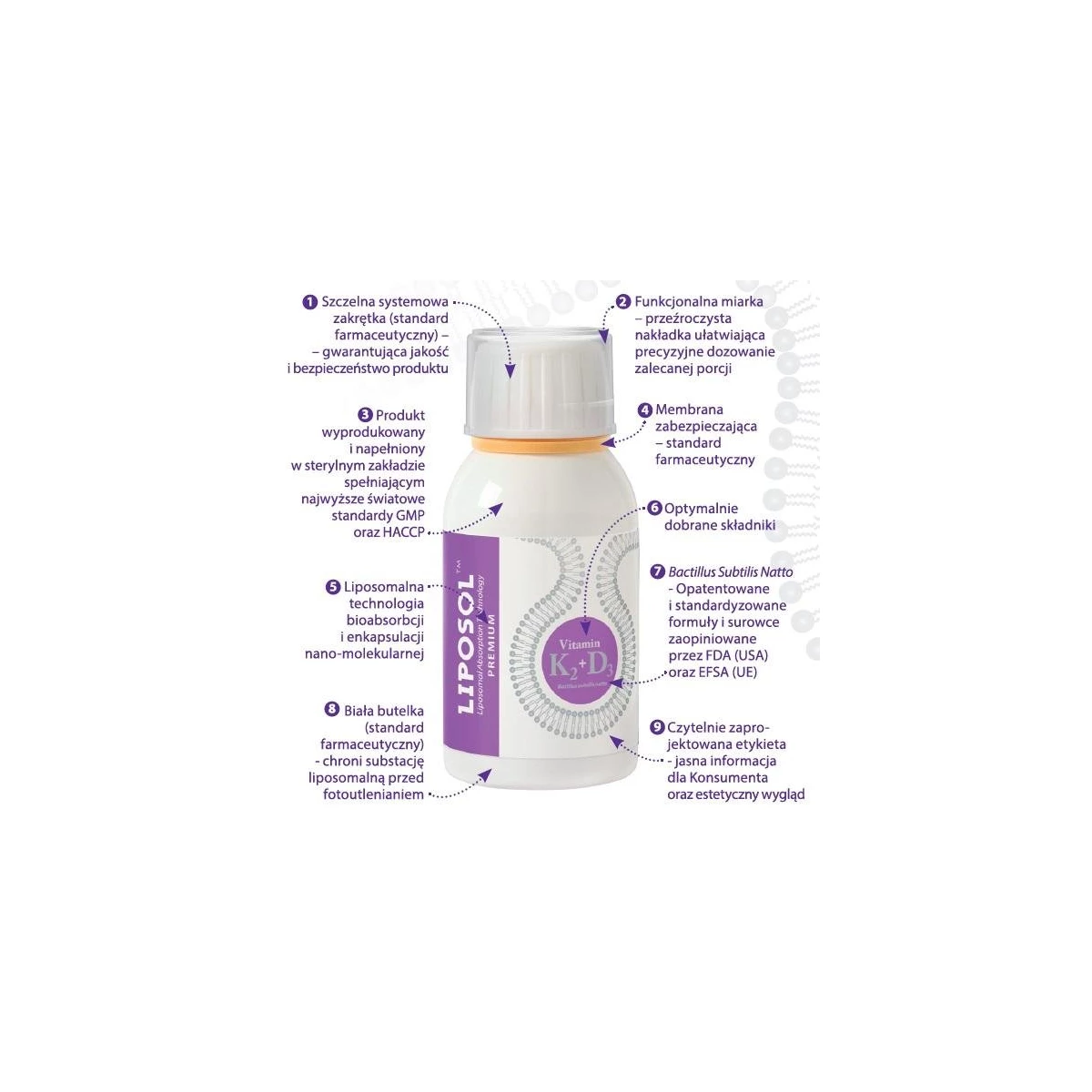 Produkt LiposolTM Premium Absorption Technology w postaci liposomalnej to światowa innowacja o niezwykle skutecznym efekcie odżywczym w zakresie suplementacji, potwierdzonym szeregiem badań laboratoryjnych i klinicznych. Liposomy LiposolTM są bezpieczne dla zdrowia i wykazują wysoką biodostępność. Wszystkie użyte składniki są wnikliwie dobrane, posiadają szereg badań i pochodzą wyłącznie od certyfikowanych dostawców.
