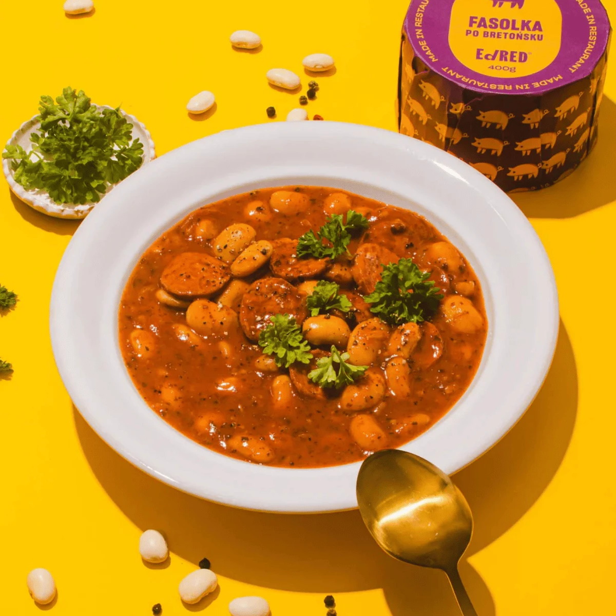 Fasolka po Bretońsku od Ed Red to rzemieślnicze danie gotowe do podgrzania, przygotowane według tradycyjnej receptury bez konserwantów. To jakość premium zamknięta w puszce, która pozwala cieszyć się domowym obiadem „jak u mamy” w zaledwie 5 minut.
