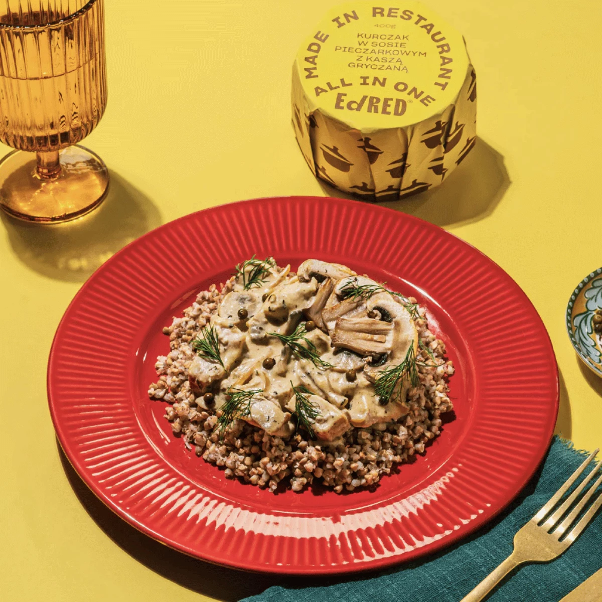 Ed Red Kurczak w sosie pieczarkowym z kaszą gryczaną 400 g - Rzemieślnicze Danie Gotowe