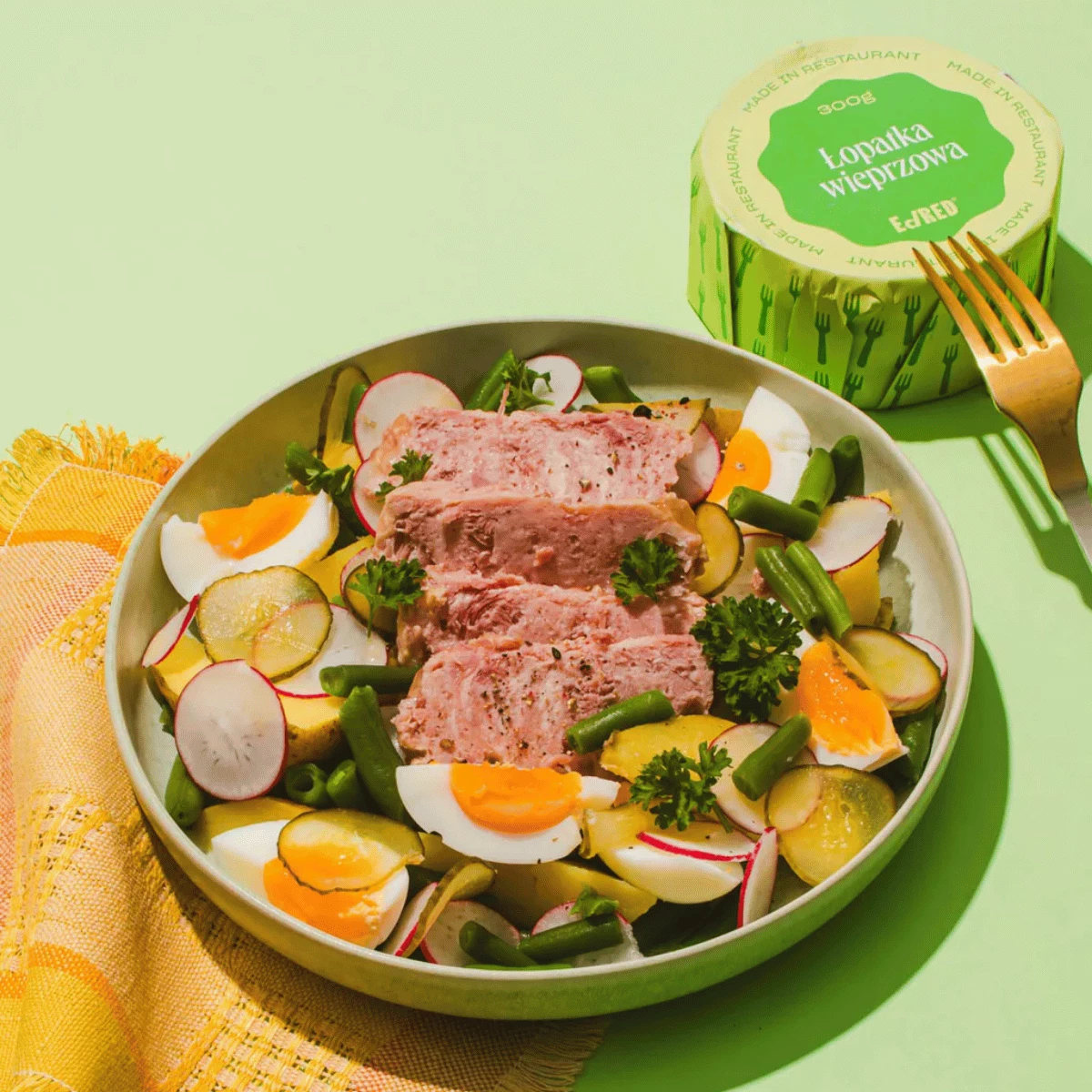 Łopatka Wieprzowa od Ed Red to rzemieślnicza interpretacja klasyki polskiego wędliniarstwa, zamknięta w nowoczesnej i wygodnej formie puszki. Połączenie tradycyjnej receptury z najwyższą jakością surowców tworzy produkt klasy premium, który pozwala cieszyć się autentycznym smakiem tradycyjnej wędliny w każdych warunkach.