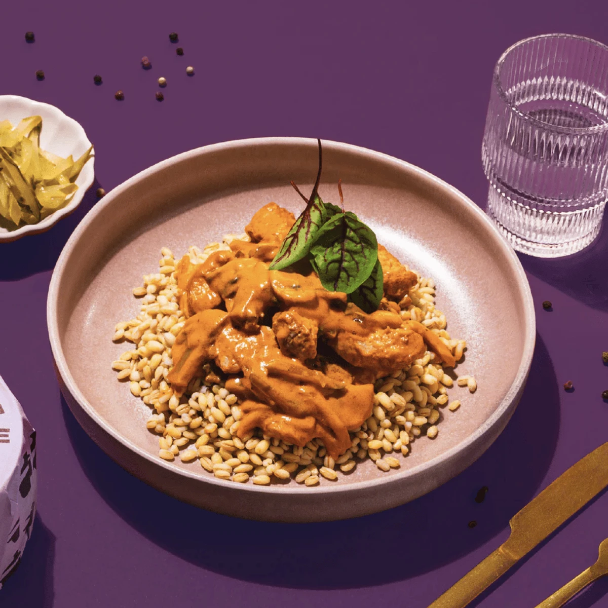Restauracyjna jakość w zasięgu ręki - niezależnie od tego, czy potrzebujesz eleganckiego obiadu, czy szybkiego posiłku po pracy, Wieprzowina a'la Stroganov z Pęczakiem dostarcza przyjemnych wrażeń smakowych.