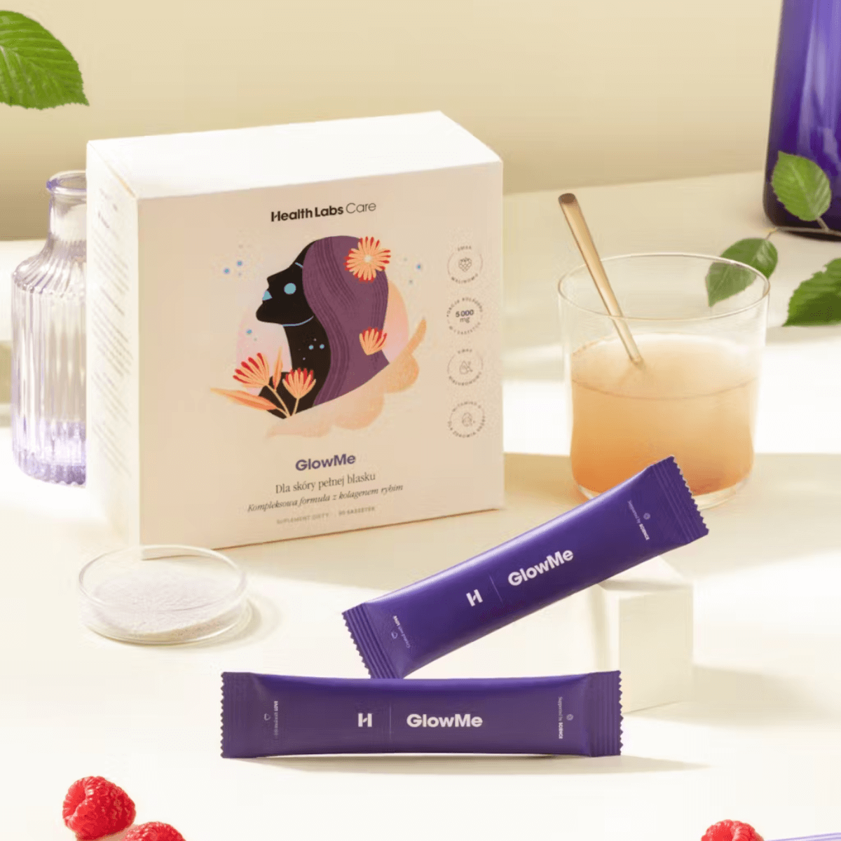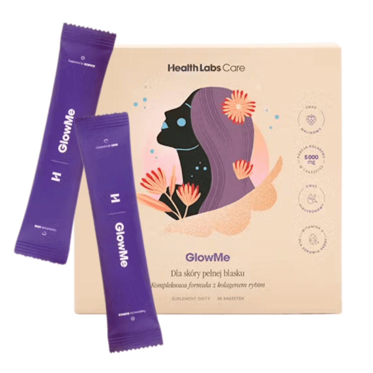 GlowMe Kolagen Witaminy Kwas Hialuronowy Piękna Skóra (30 sasz) Health Labs Care (OUTLET)