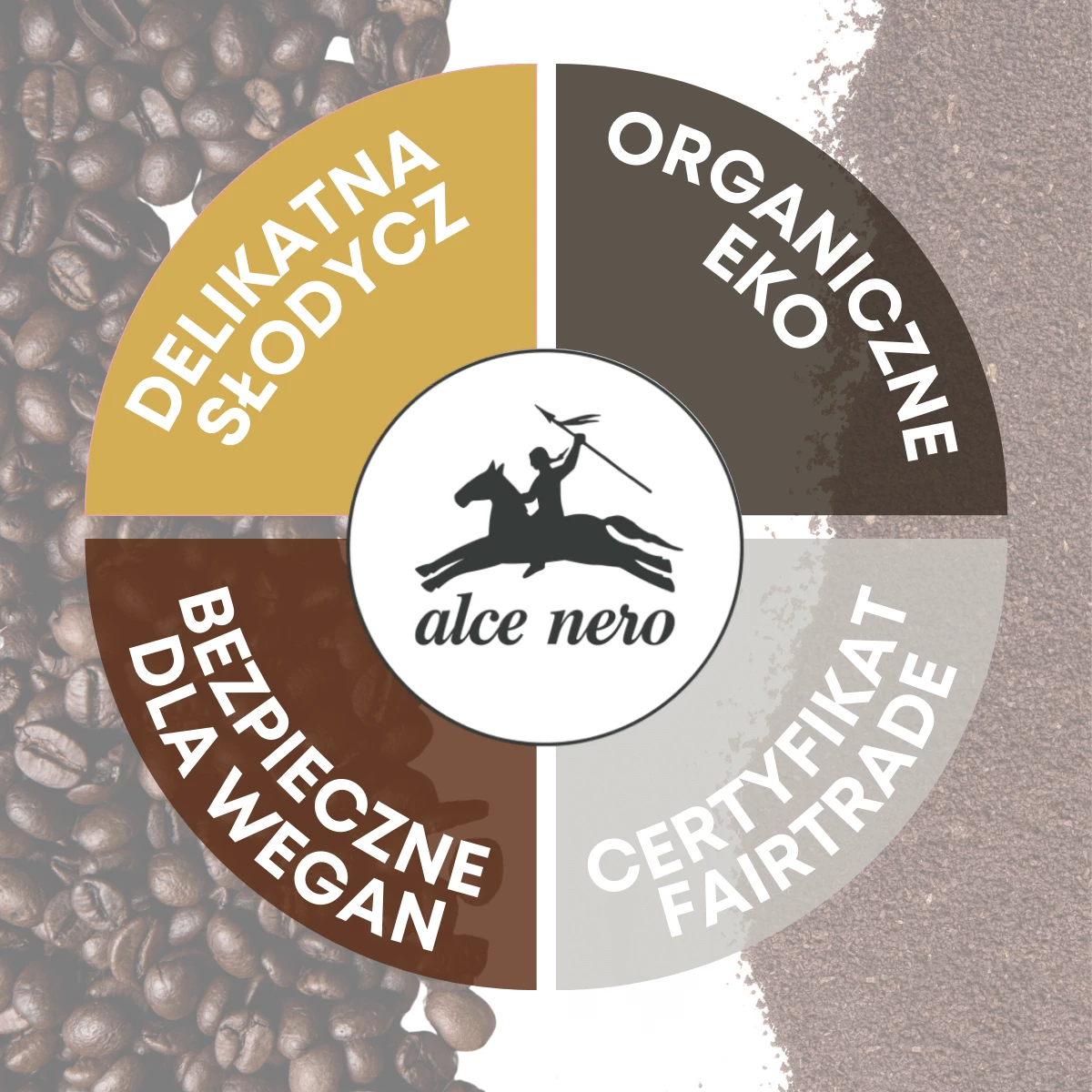 Kawa Mielona 100% Arabica ALCE NERO to propozycja dla wszystkich koneserów klasycznego smaku kawy wzbogaconego łagodnymi akcentami. Jej smak określa się jako słodki, orzechowo-karmelowo-cynamonowy.