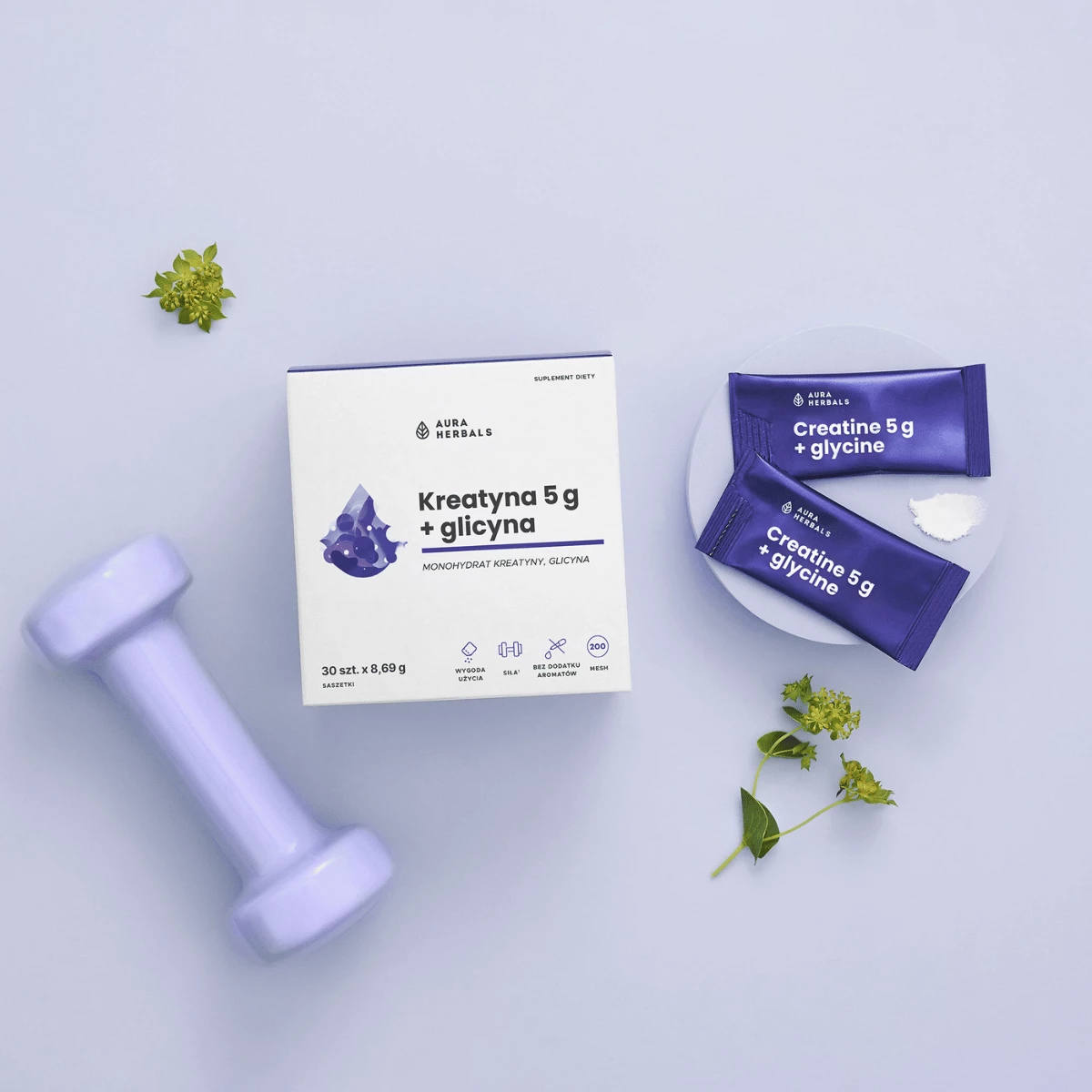 Kreatyna Monohydrat 5000 mg Glicyna 3000 mg Proszek (30 sasz) Aura Herbals