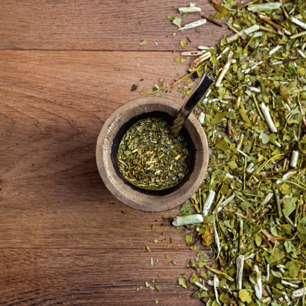 Ostrokrzew paragwajski (Yerba Mate) jest tradycyjnie stosowany w celu wsparcia kontroli masy ciała oraz ożywienia organizmu.