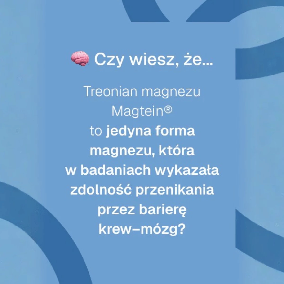 Większość form magnezu ma trudności z przedostaniem się do ośrodkowego układu nerwowego. Magtein® (L-treonian magnezu) został opracowany przez naukowców z MIT tak, aby skutecznie podnosić poziom magnezu bezpośrednio w mózgu. Dzięki temu wykazuje unikalne właściwości wspierające plastyczność synaptyczną, co przekłada się na lepszą naukę, szybsze zapamiętywanie i lepszą jakość snu.