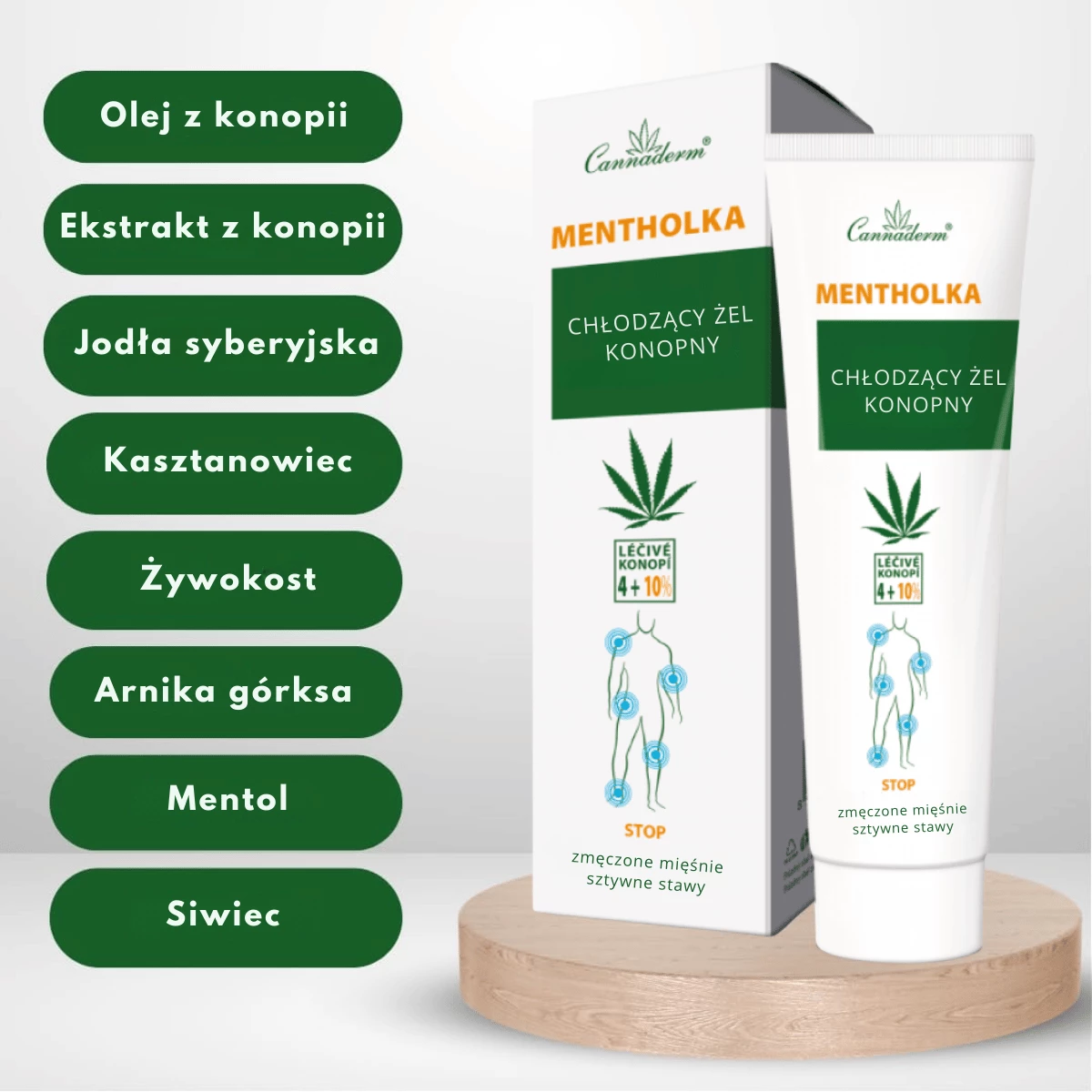 Żel powstał na bazie oleju konopnego wzbogaconego ekstaktami i olejkami roślinnymi o działaniu chłodzącym i przeciwzapalnym.