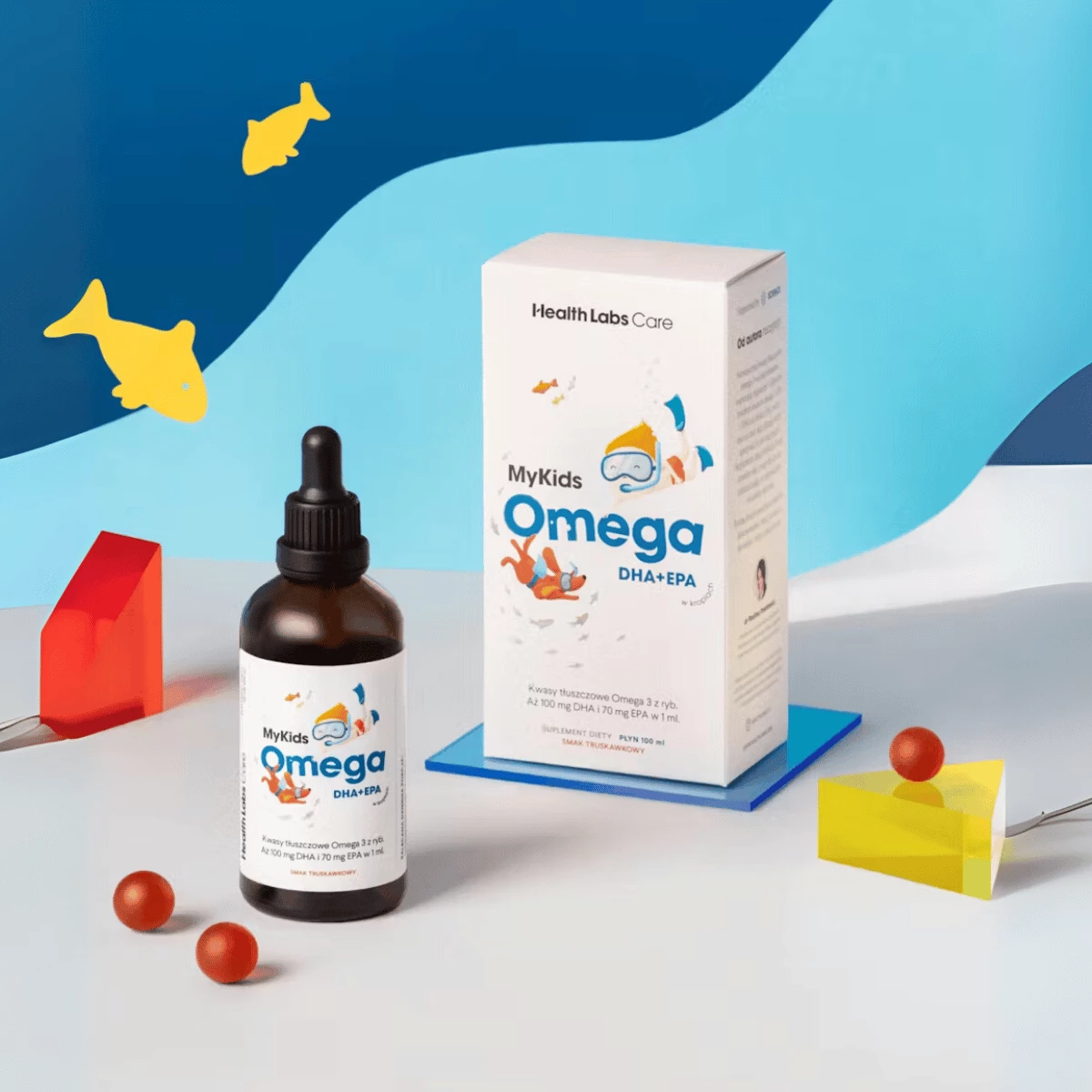 MyKids Omega Płyn Kwasy Omega 3 DHA EPA Smak Truskawkowy 100 ml Health Labs Care