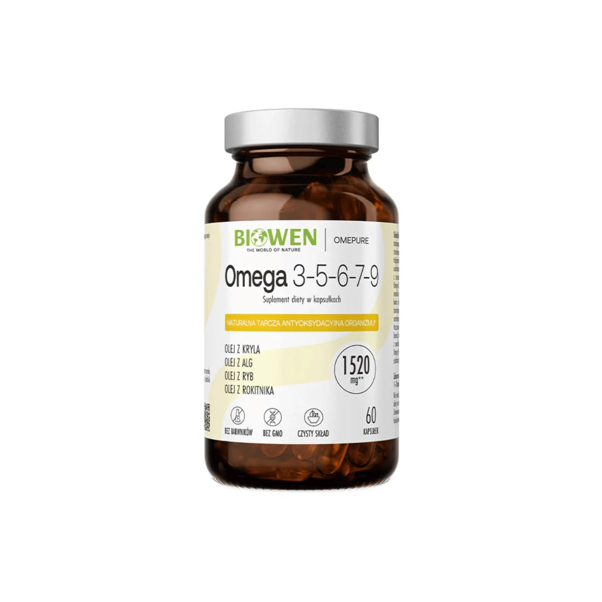 Omega 3-5-6-7-9 — Kwasy EPA DHA Olej z Kryla, Alg, Ryb i Rokitnika 1520 mg (60 kaps) OmePure Biowen