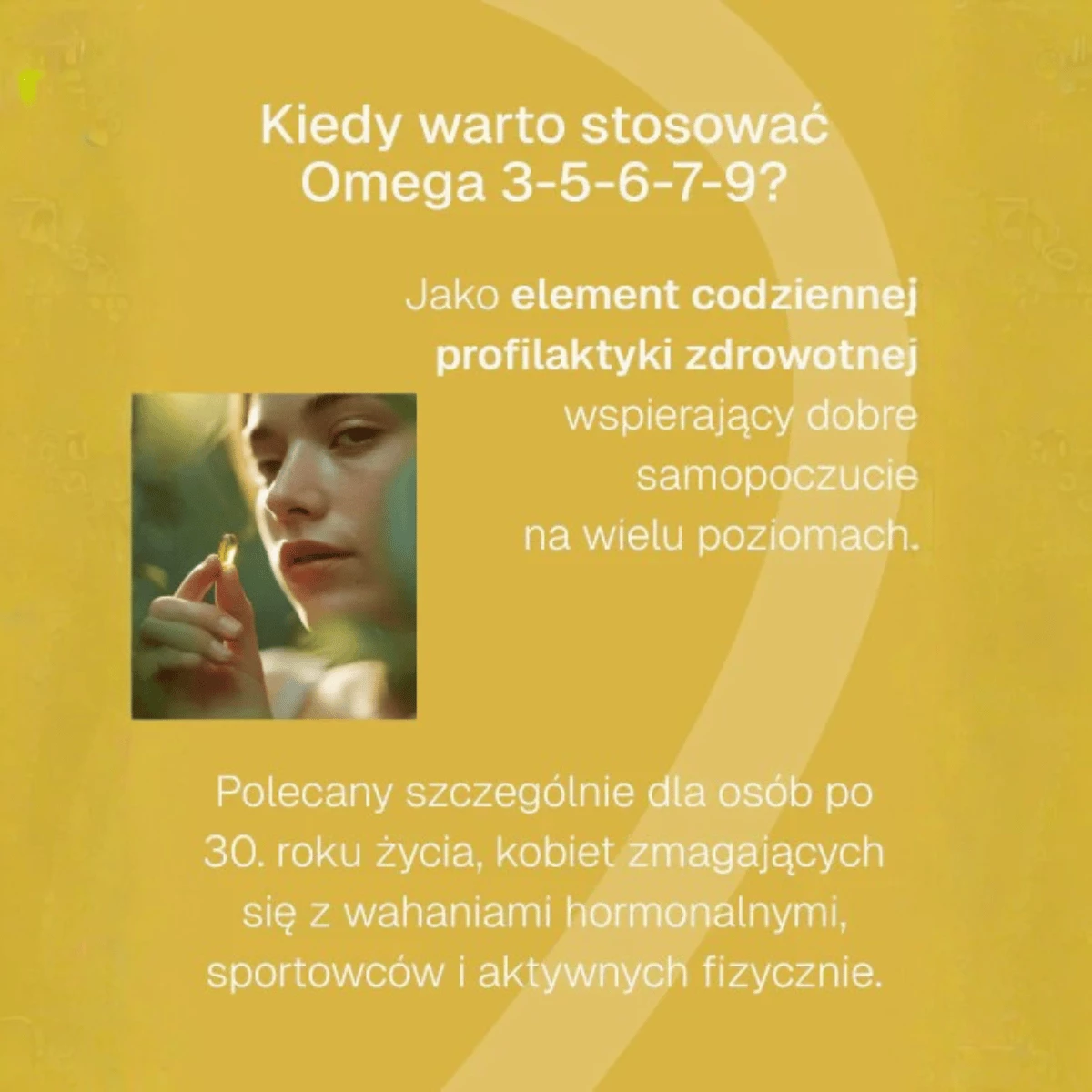 Olej rybi oraz z alg i kryla, to doskonałe źródła kwasów omega-3 (EPA i DHA). W tych tłuszczach znakomicie rozpuszcza się obecna w preparacie witamina E. Suplementacja kwasów omega-3 zalecana jest szczególnie osobom, których dieta nie obfituje w tłuste ryby morskie.