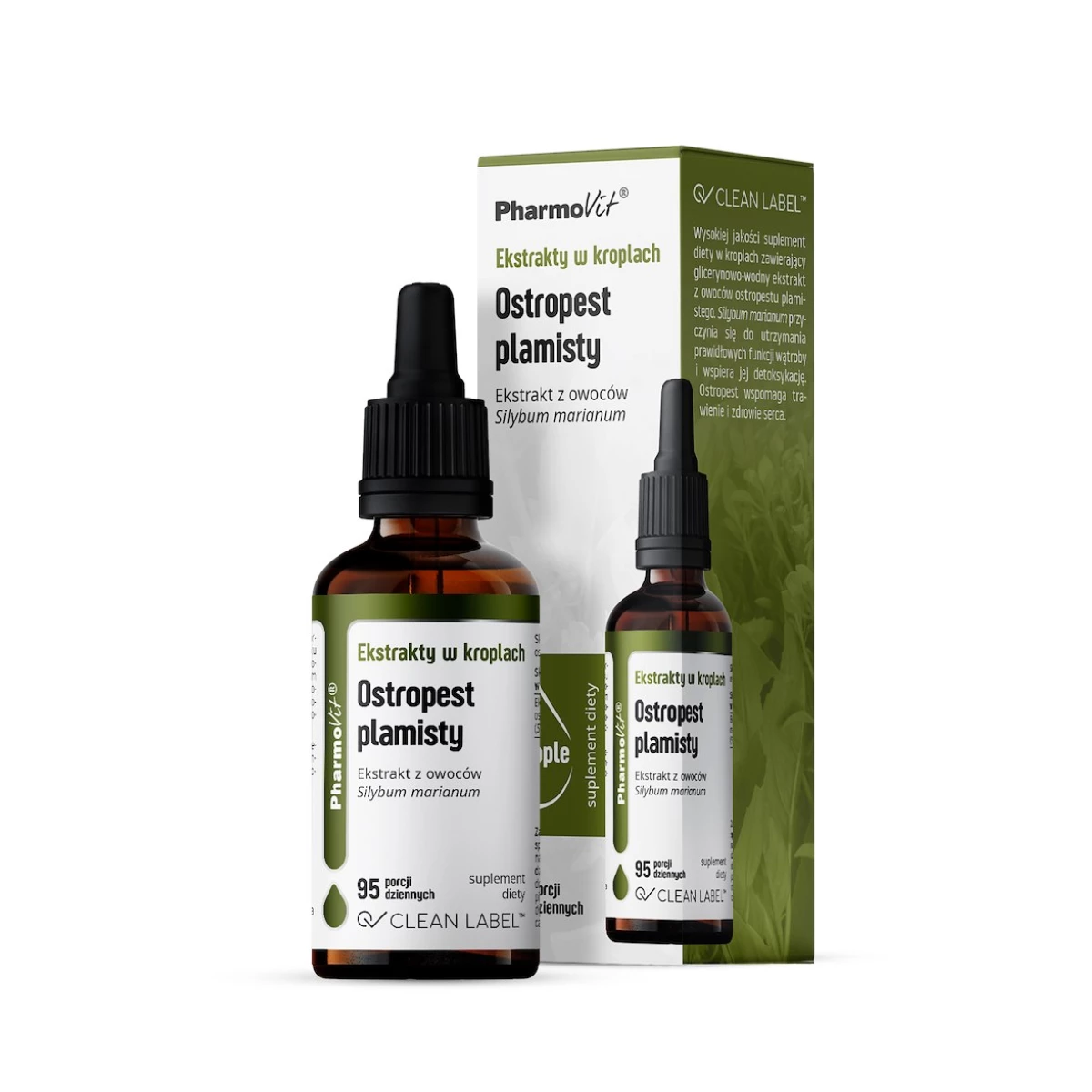 Ekstrakt Ostropest Plamisty 30 ml Pharmovit wspiera procesy oczyszczania organizmu, pomaga dbać o zdrowie komórek wątroby oraz sprzyja utrzymaniu właściwego trawienia. Wpływa korzystnie na prawidłowe funkcjonowanie układu krwionośnego, wspierając równowagę metaboliczną.