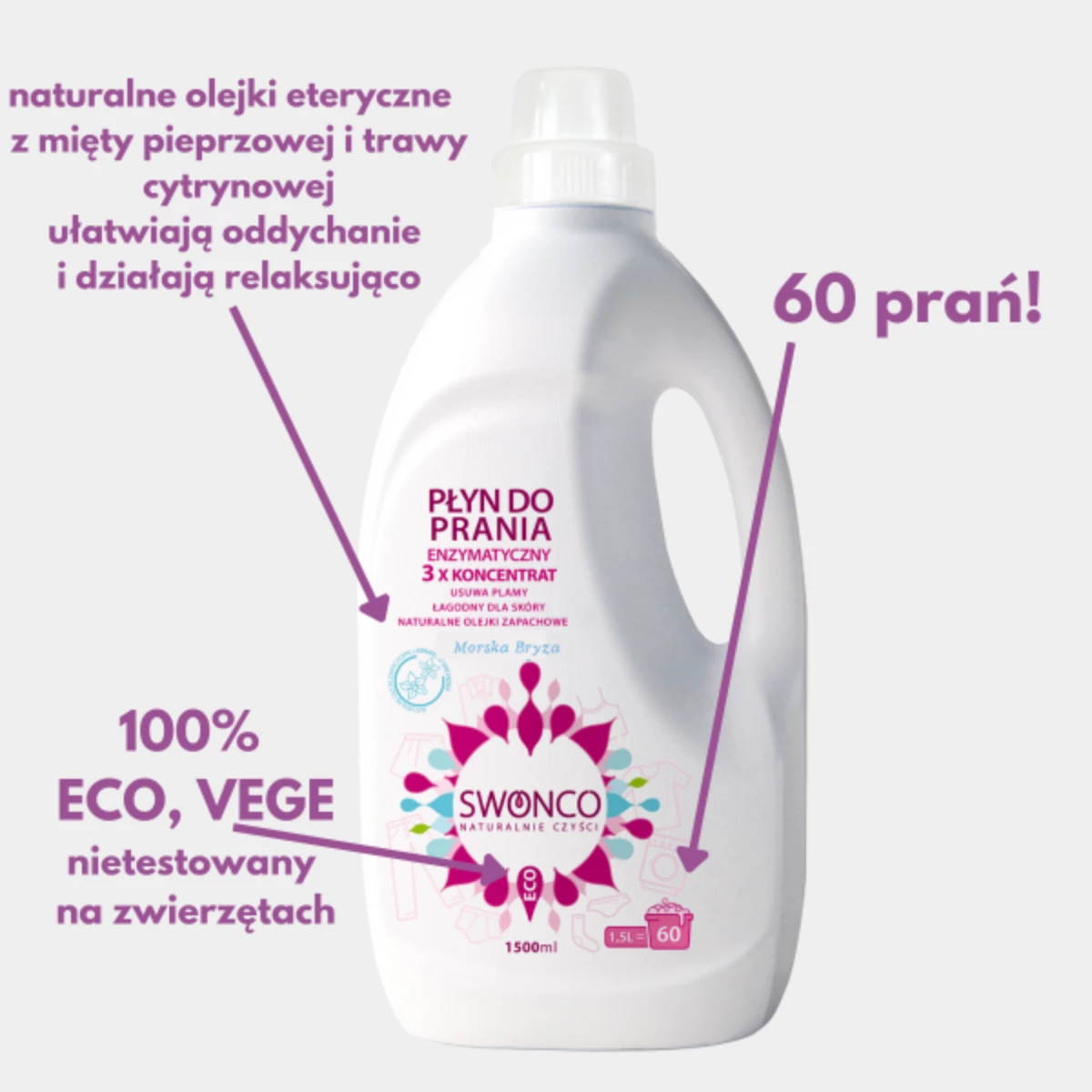 Płyn do Prania 3 x Koncentrat Morska Bryza Ekologiczny 1500 ml SWONCO