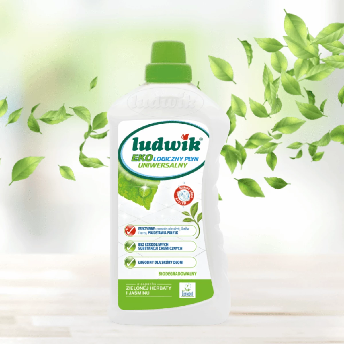 Ekologiczny płyn uniwersalny Ludwik to wielozadaniowy produkt, który łączy siłę czyszczenia z wyjątkową dbałością o środowisko i zdrowie użytkownika. Dzięki innowacyjnemu Baking Soda System oraz kompozycji zapachowej zielonej herbaty i jaśminu, sprzątanie staje się łatwe, skuteczne i przyjemne.