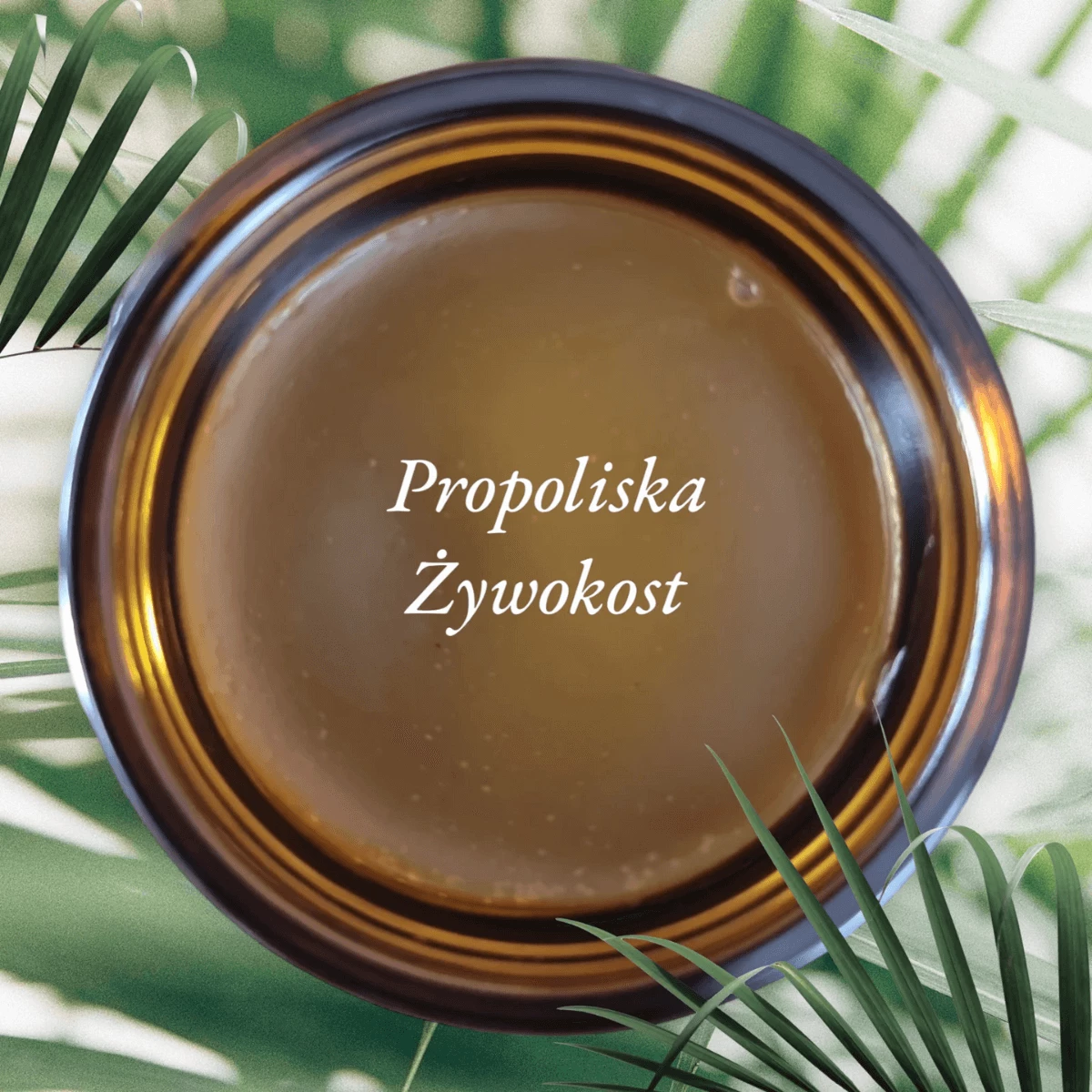 Propoliska Maść Propolisowa z żywokostem to specjalistyczny produkt stworzony z myślą o regeneracji skóry. Formuła oparta jest na 100% naturalnych składnikach, a głównym aktywnym składnikiem jest propolis znany ze swoich właściwości łagodzących i regeneracyjnych.