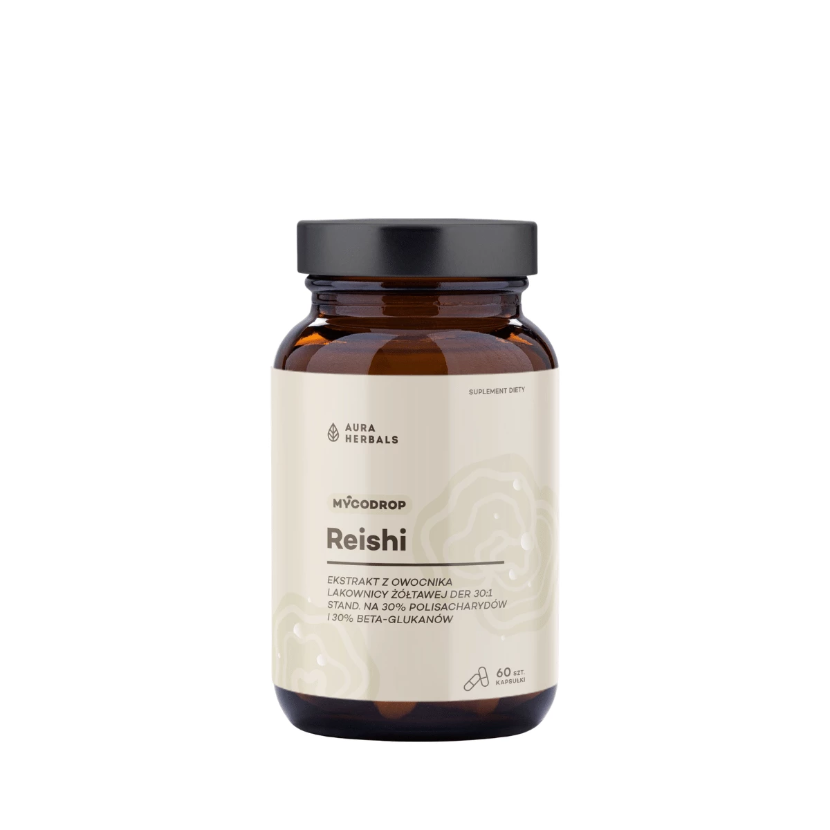 Reishi - Ekstrakt z Owocnika Lakownica Żółtawa DER 30:1 500 mg Mycodrop (60 kaps) Aura Herbals