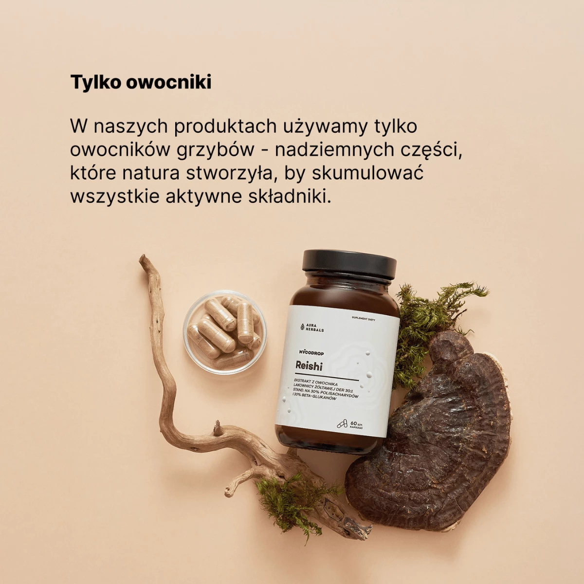 Warto wiedzieć, że owocniki grzybów charakteryzują się wyższą zawartością beta-glukanów i polisacharydów w porównaniu do grzybni. Wybierając Mycodrop, otrzymujesz produkt skoncentrowany wyłącznie na najbardziej wartościowych składnikach odżywczych reishi.