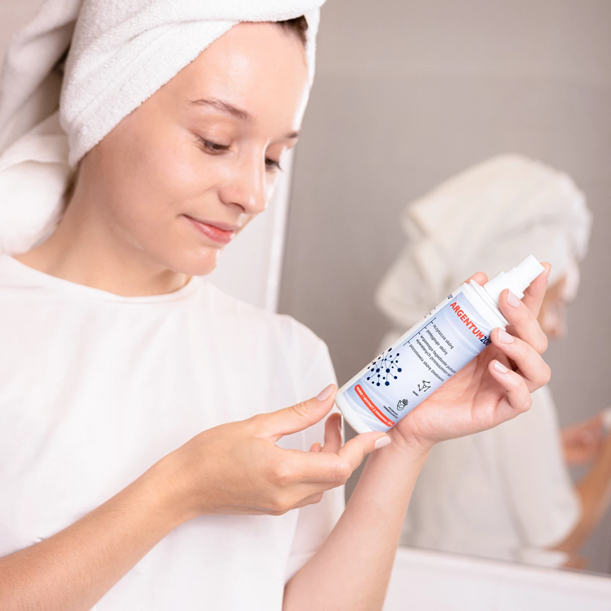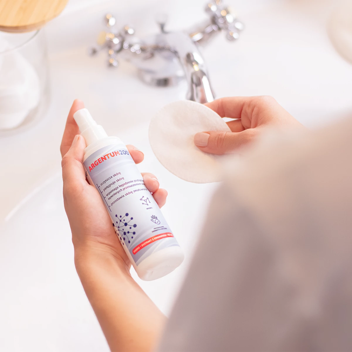 Regularne stosowanie Toniku Argentum200 rano i wieczorem wspiera utrzymanie skóry w dobrej kondycji – pomaga ograniczyć niedoskonałości, zredukować nadmiar sebum i zadbać o zdrowy, matowy wygląd cery.