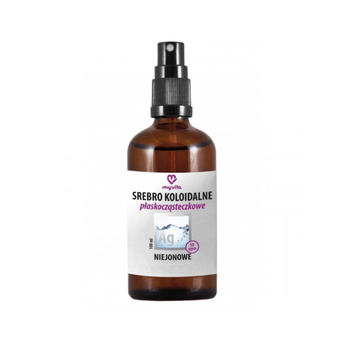 Niejonowy nanokoloidalny roztwór srebra MyVita to bezkonkurencyjna płaska cząsteczka o stężeniu srebra wynosi 50 ppm.