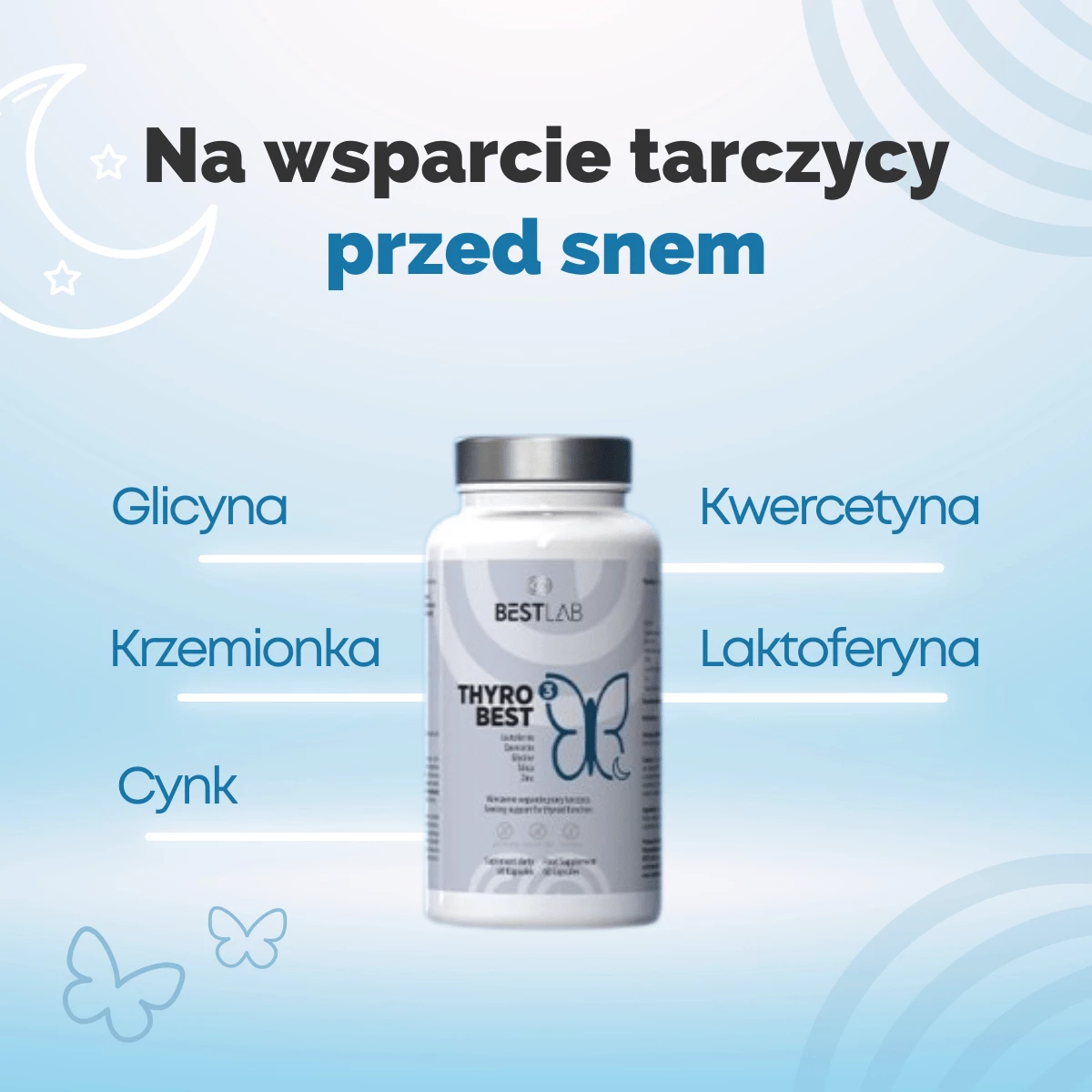 Skrupulatnie skomponowany skład ThyroBest 3 to niezbędnik na dobre samopoczucie i kondycję organizmu w porze wieczornej.