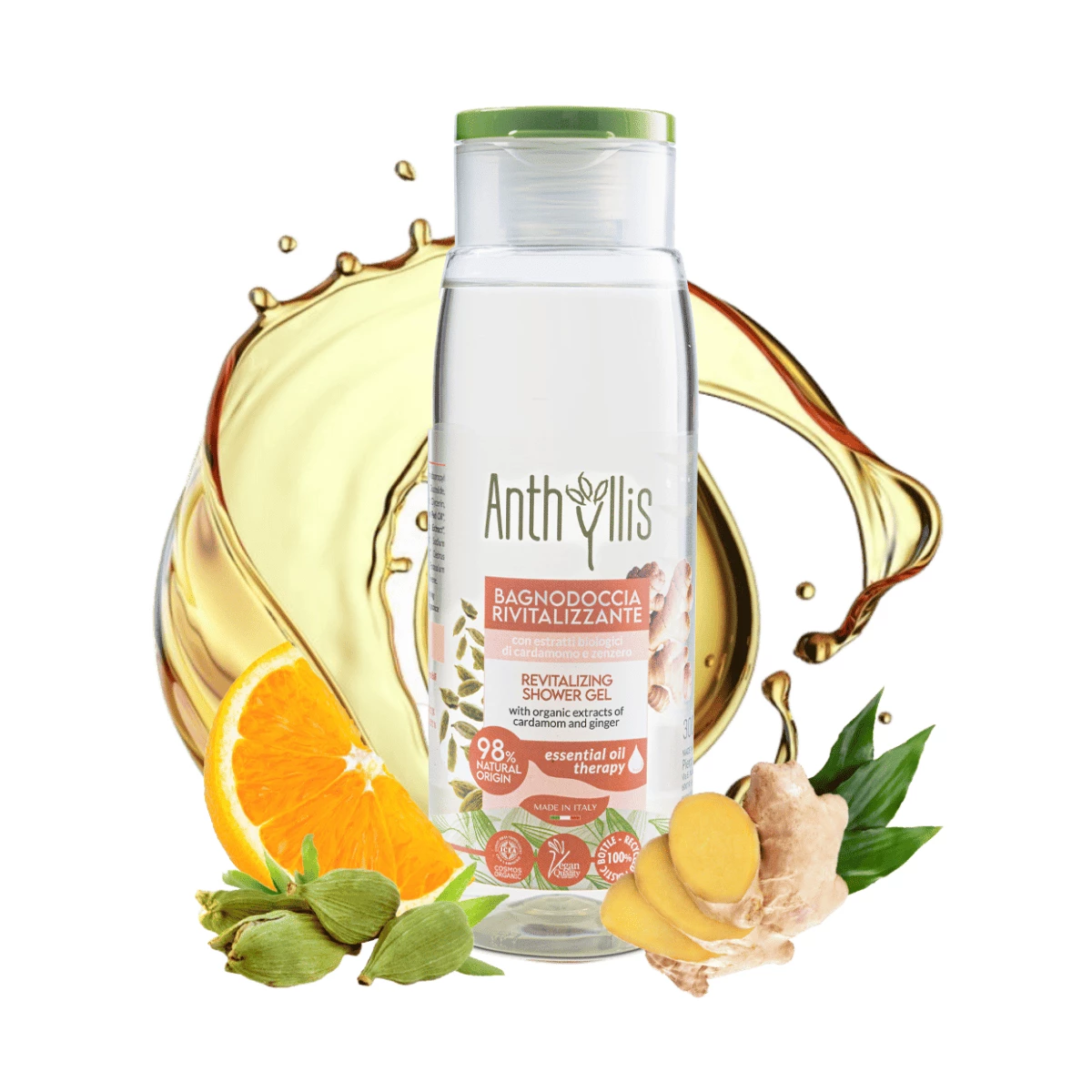 Sercem produktu Żel pod Prysznic Rewitalizujący Anthyllis jest synergia naturalnych olejków eterycznych i certyfikowanych ekstraktów roślinnych. Połączenie korzennych nut kardamonu i imbiru z orzeźwiającą słodyczą pomarańczy nie tylko doskonale myje, ale działa tonizująco i antyoksydacyjnie.